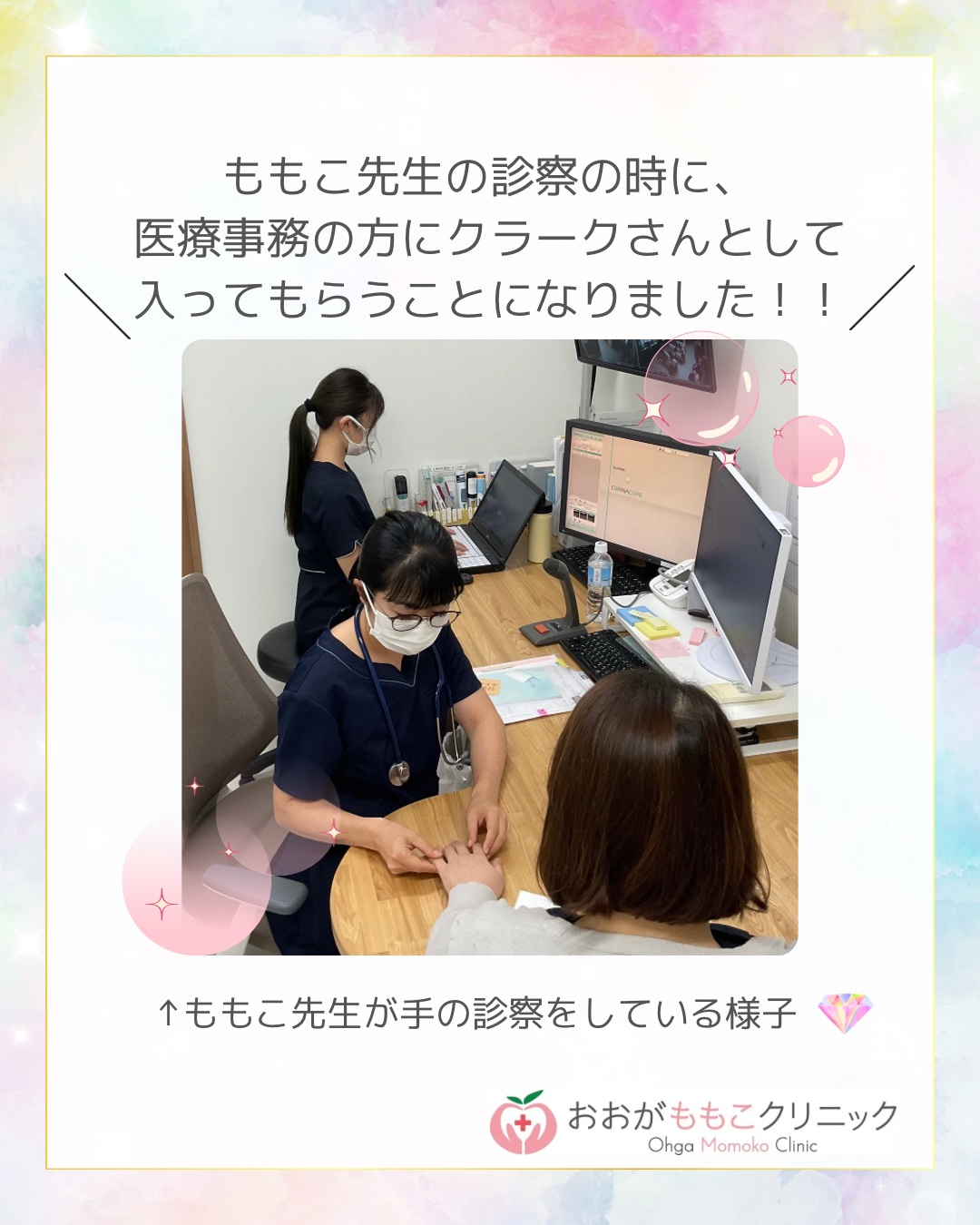 ももこ先生の診察時に医療事務のスタッフが「クラーク」として同席し、診療をサポートさせていただくことになりました。