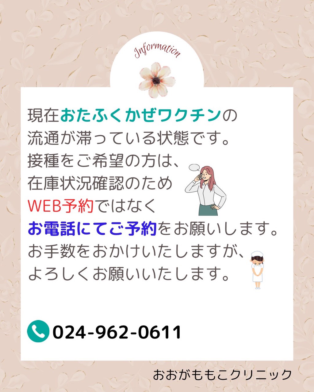 NEWSニュース ホーム ニュース おたふくかぜワクチンについてのお知らせおたふくかぜワクチンについてのお知らせ2025.11.19 ご不明な点などございましたら、お気軽にお電話、または公式LINEよりお問い合わせください。カテゴリーニュース最近の投稿駐車場のご利用について年末年始の休診日のお知らせおたふくかぜワクチンについてのお知らせ